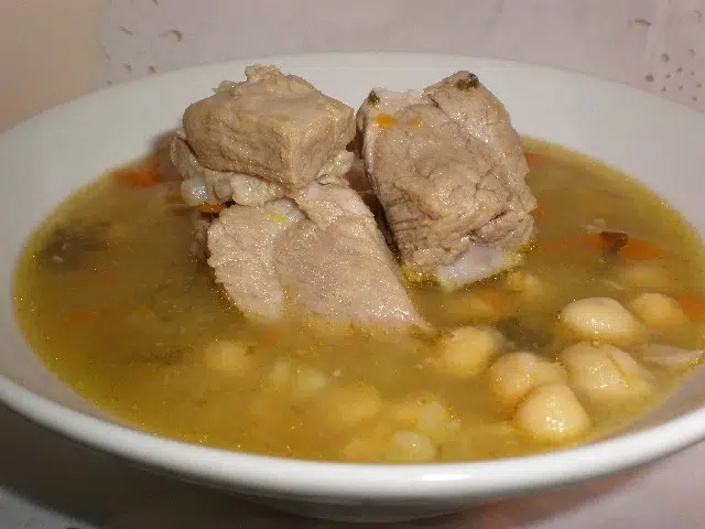 Receta de 🍲 Garbanzos con jaramagos. Hoy vamos a elaborar, una suculenta receta de potaje de garbanzos con costillas de cerdo y jaramagos.